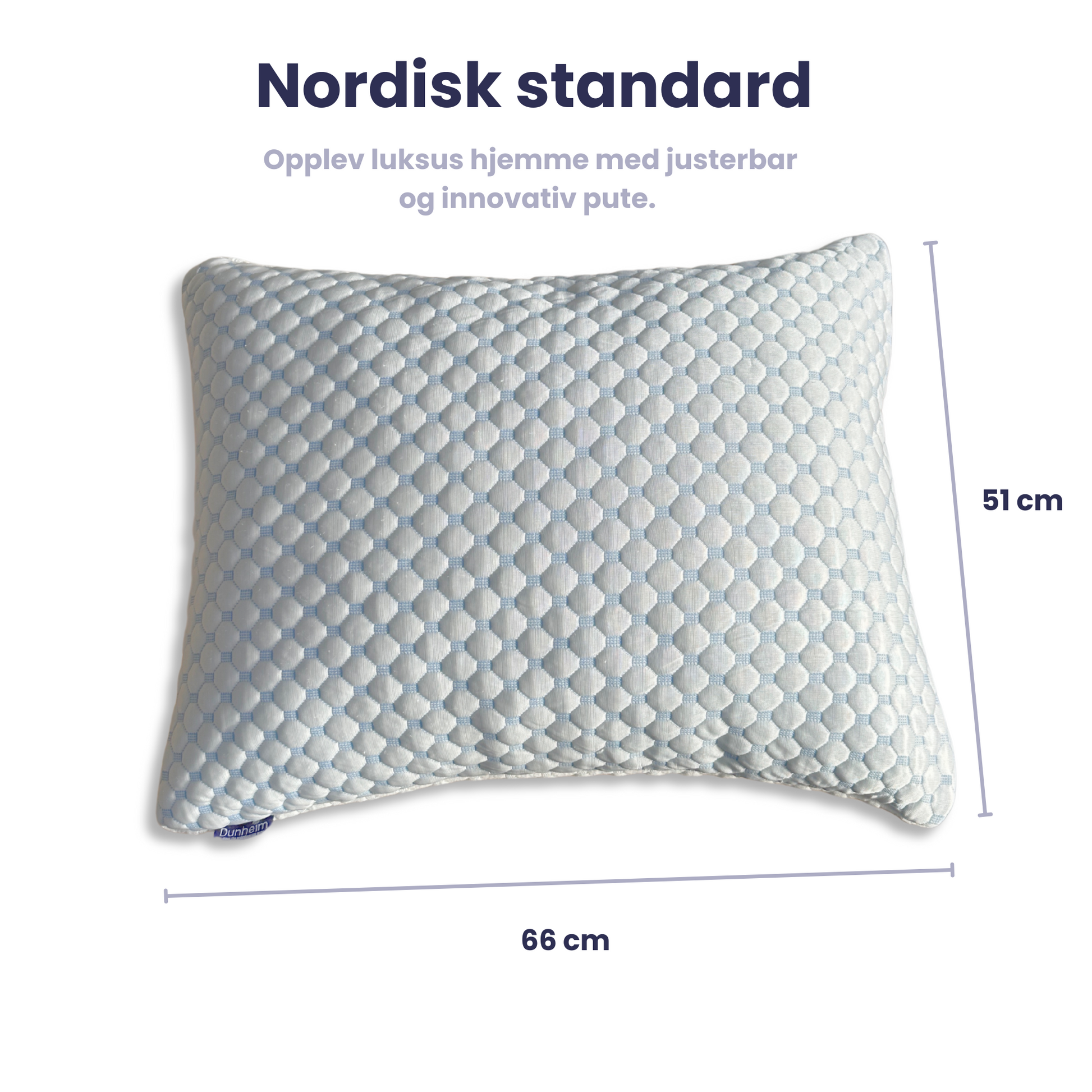 Puten er 51cm bred og 66 cm lang. Laget etter Nordisk standard og passer alle dine vanlige putetrekk. (ps. du behøver ikke putetrekk😴)